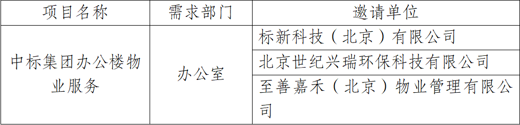 按照《中國標準科技集團有限公司采購工作管理辦法(試行)》要求,現對中標集團辦公樓物業服務項目競爭性談判邀請單位公示。